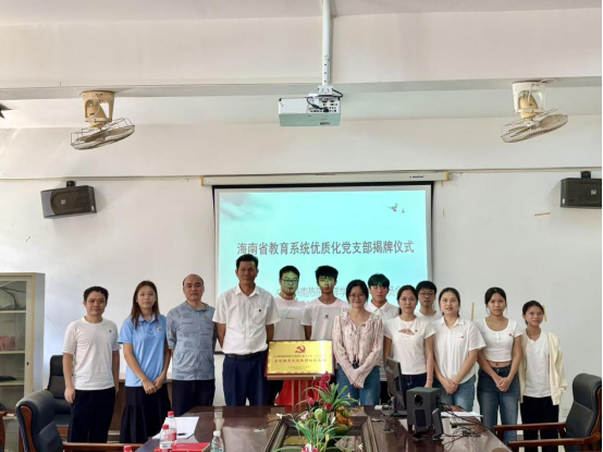 揭牌仪式上,廖余燕同志宣读海南省教育系统优质化党支部入选文件并向大家通报了优质化党支部的建设、申报过程。她代表支部表示很荣幸获得此项荣誉,这是支部全体党员在上级党委正确领导下,团结奋斗、锐意进取的成果,支部全体党员同志一定再接再厉,向着建设特色化党支部的目标努力迈进。