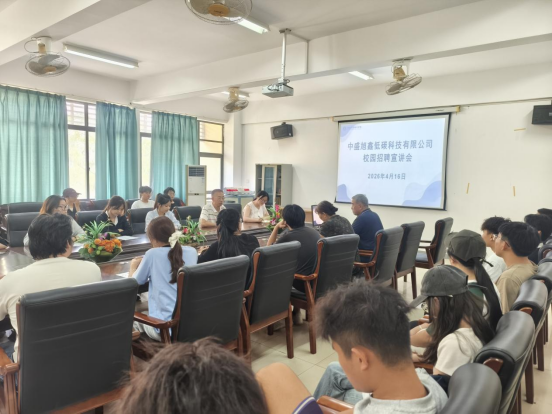 为切实做好2026届毕业生就业工作,进一步拓宽就业渠道,精准搭建企业与毕业生双向选择的互动桥梁,助推毕业生实现充分就业、高质量就业,4月16日下午,海南中盛旭鑫低碳科技有限公司负责人韩士渠、李胜改一行莅临我院9403会议室开展2026届毕业生校园招聘宣讲会。我院相关专业辅导员、2026届化学专业在校学生参加宣讲会,学院党委委员、副院长邵东旭主持会议。