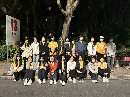 本次志愿活动,我院负责区域为13—15公里。为保障志愿服务精准高效,赛前我们的志愿者们接受了系统专业的培训。比赛当日天未破晓,志愿者们身着统一制服,在廖余燕、文静两位老师的带领下奔赴岗位。比赛中,他们坚守岗位,忠实履责,密切关注选手状态、及时反馈突发情况,和医护人员一起为选手们“保驾护航”。
