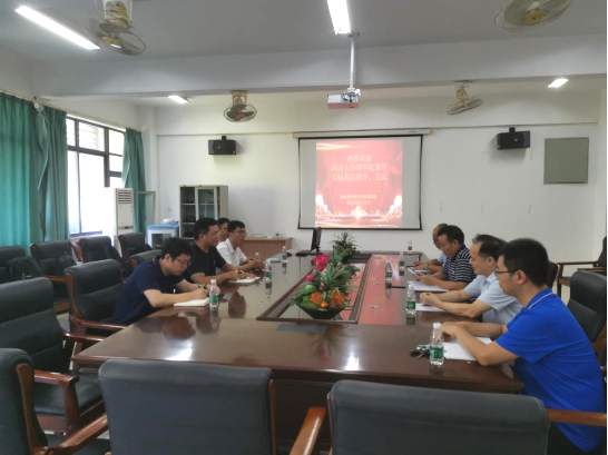 6月22日上午,海南大学理学院副院长庾名槐、物理专业责任教授杨玮枫、李勇、物理系副主任叶巍翔教授一行来我院指导交流工作,我院副院长冯浩、物理学教授刘晶晶、物理学专业负责人李长伟和程然老师参加本次交流会。